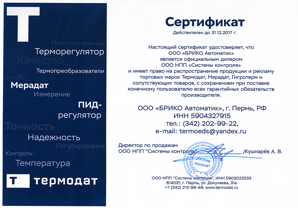 - официальным дилером Научно-производственного предприятия «Системы контроля», чьи приборы по марками Термодат, Мерадат и Гигротерм знают и используют киповцы всей России и стран СНГ