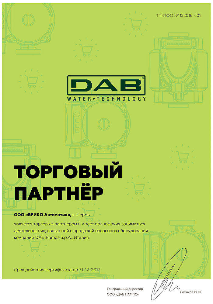 - торговым партнером насосного оборудования компании DAB Pumps S.p.A., Италия