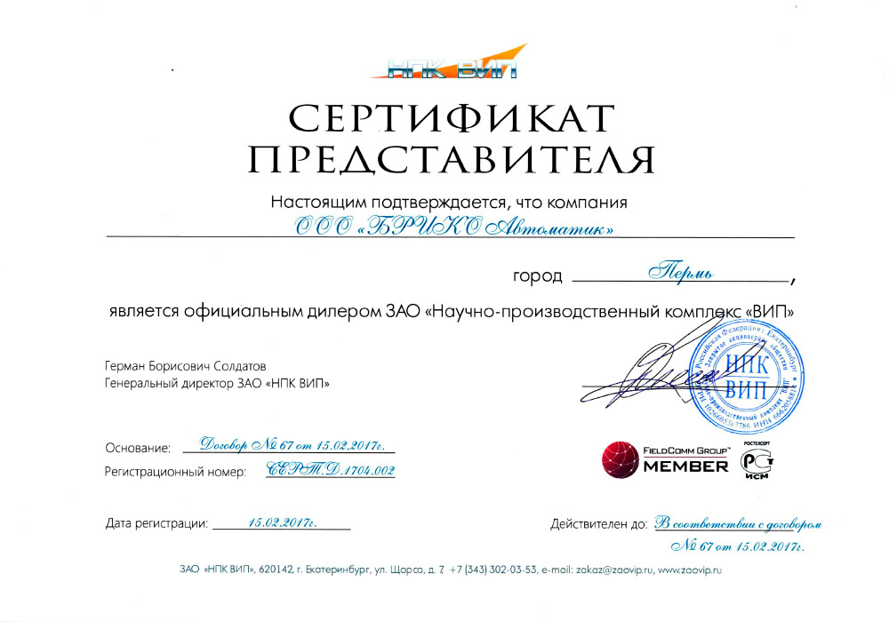 - дилером Научно-производственного комплекса ВИП — разработчиком и производителем высоконадежных датчиков давления для предприятий нефте- и газодобывающей промышленности, энергетики, «Росатома», химической промышленности, пищевой промышленности и ЖКХ