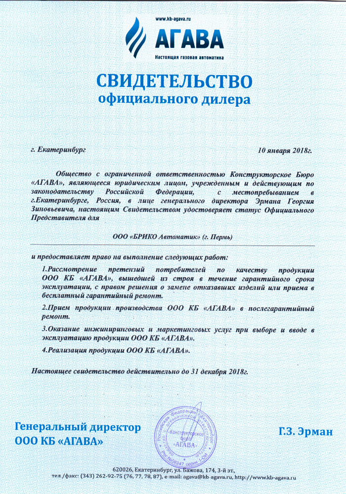 - официальным дилером КБ Агава (г. Екатеринбург) — отечественным производителем автоматики для промышленных котельных, печей, горелок; средств КИПиА и частотных преобразователей