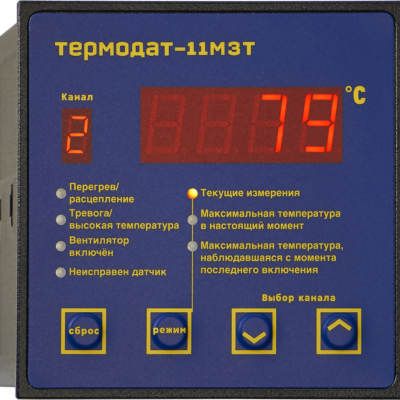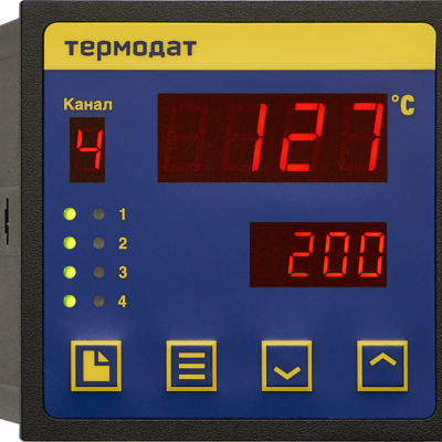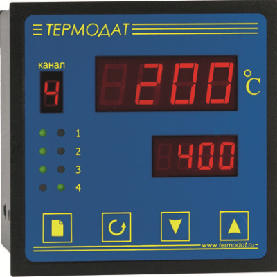 Термодат-11М6 —  двух-, трех- или четырехканальный измеритель температуры, аварийный сигнализатор и регулятор со светодиодными индикаторами.