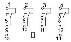 Схема контактов | 4Z: 4 переключающихся группы контактов |