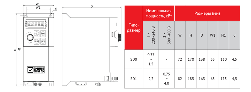 1×220~240 | AD80-2SD37 | 0,37 | 6,2 | 2,2 | 10/10 | SD0 | 72* 170* 138 | 0,8 |