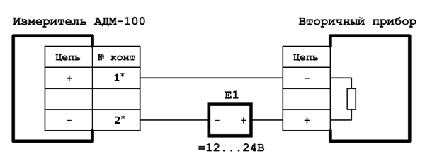 Сопротивление нагрузки: R <=500 Ом при напряжении питания 24 В, R <=250 Ом при напряжении питания 12 В