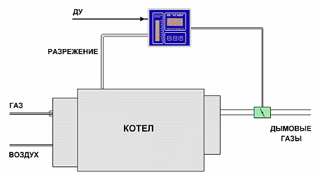 Схема регулятора разрежения в топке котла |