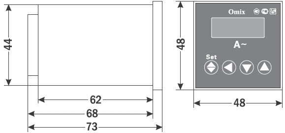 Габаритные размеры | P44: 48×48×73 мм Р77: 72×72×85 мм Р94: 48×96×105 мм Р99: 96×96×86 мм Р1212: 120×120×86 мм |