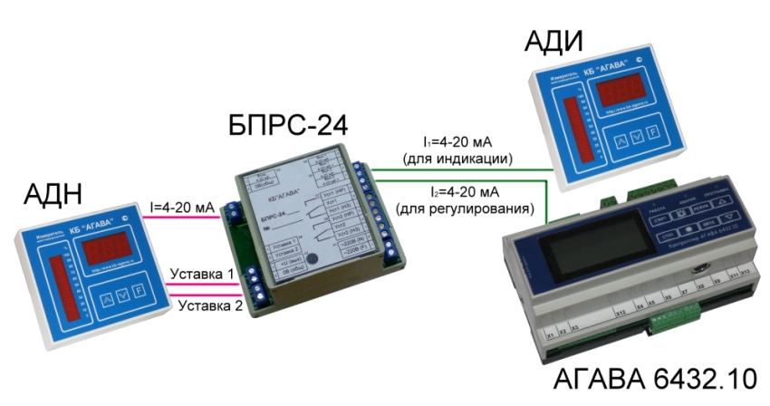 БПРС предназначен для разветвления токового сигнала 4-20мА на два гальванически развязанных сигнала 4-20мА. Дополнительно позволяет запитывать стабилизированным напряжением постоянного тока электронные приборы