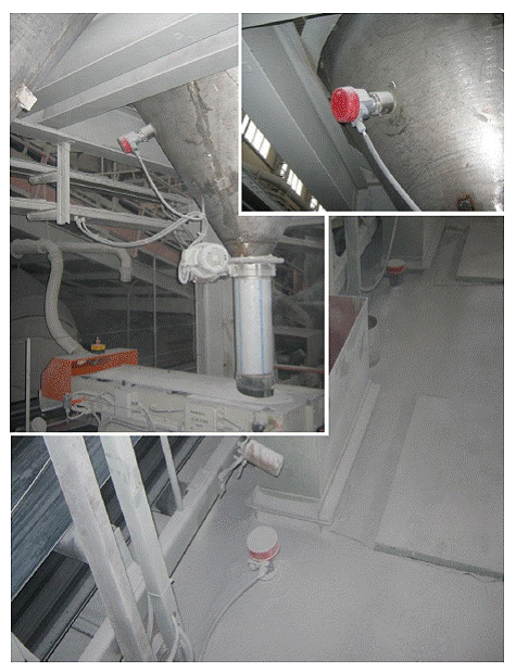 Датчики устанавливаются на силосах хранения пресс-порошка. Верхний аварийный датчик не допускает переполнение бункера при загрузке сырья. Нижний датчик своевременно оповещает о необходимости досыпать в бункер, тем самым не позволяя бункеру опустошиться, что повлечет за собой остановку производства.