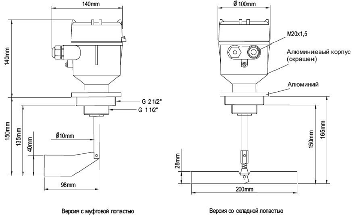 INNOLevel IL-LAS-N-Ex | Механический ротационный датчик предельного уровня сыпучих материалов в алюм. корпусе, взрывозащ. ТР ТС 012/2011, -40 +80 С, Рmax=0.8 bar, IP66, лопасть складная двусторонняя 28х200 мм, нерж. сталь, скорость вращения 1 об/мин, соединение- резьба 1 1/2″ с переходом на 2 1/2″ алюм., удлинение 165 мм, нерж. сталь | 220 VAC |