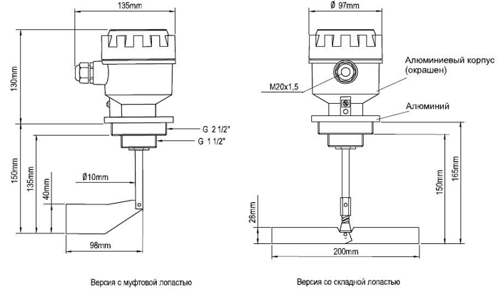 IL-LAA-N-5 (220 VAC) Механический ротационный датчик предельного уровня сыпучих материалов в алюм. корпусе, -40 +80 С, Рmax=0.8 bar, 220 VAC, IP65, лопасть 40х98 мм, нерж. сталь, скорость вращения 5 об/мин, соединение- резьба 1 1/2″ с переходом на 2 1/2″, алюм., удлинение 150 мм, нерж. сталь, 1 гермоввод