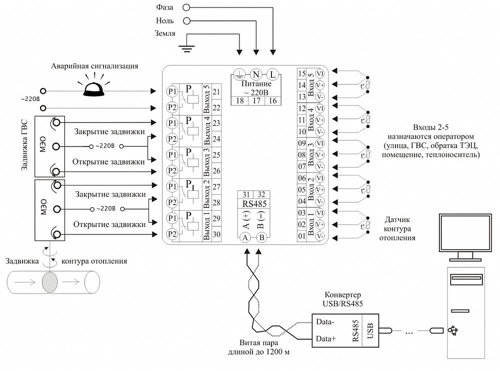 35C5 — 5 входов для термометров сопротивления, 5 реле, интерфейс RS485, архив 2Мб