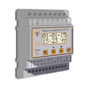 - Модуль обеспечивает погодозависимое управление температурой подающей магистрали без прямого влияния комнатной температуры и при этом осуществляет следующие функции: