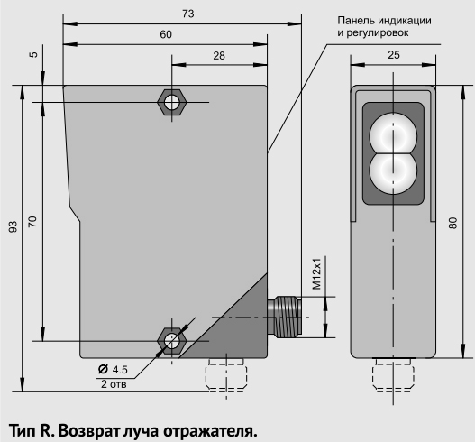 Датчик бесконтактный оптический типа R, со светоотражателем ВБО-У25-80Р-7113-С