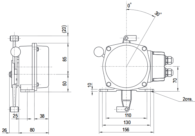 Электросоединение | Кабельный ввод М20х1,5 — 2шт для стандартного исполнения Кабель ПВХ, 500 мм для коррозионностойкого исполнения |