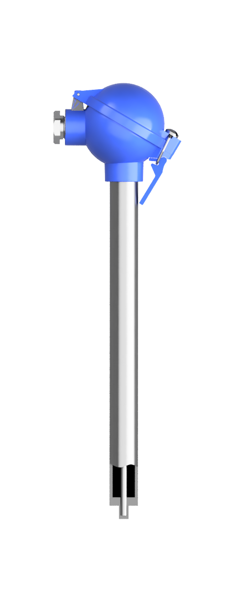 Защитная арматура  без штуцера, с утонением в зоне измерения. Материал клеммной головки – алюминиевый сплав.
