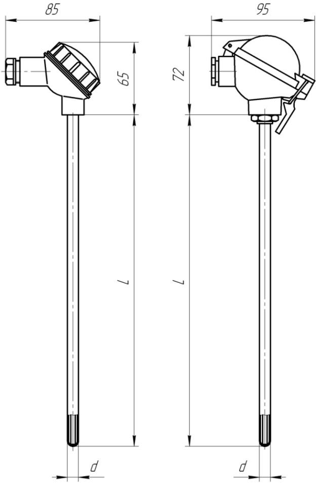 - ТХА-К/ТХК-К/ТЖК/ТНН.104: защитная арматура без штуцера, материал клеммной головки – фенопласт. Возможна комплектация передвижными штуцерами.