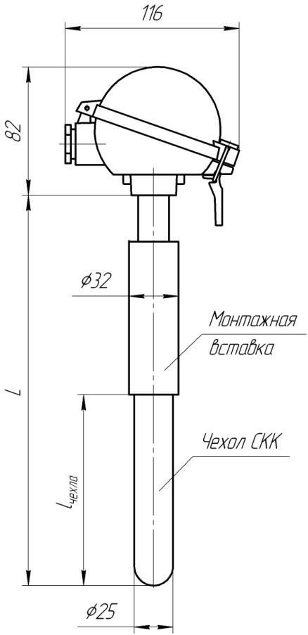 - Длина монтажной части, L / длина чехла, lчехла