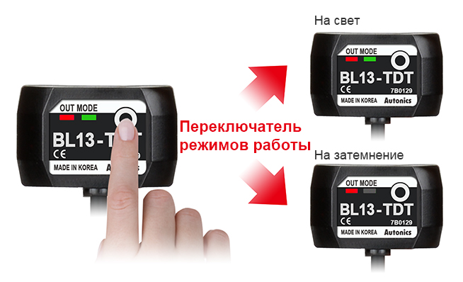 Пользователи могут легко переключаться между режимами при помощи переключателя. Зеленый светодиодный индикатор горит в режиме “на свет” и выключен в режиме “на затемнение”, для быстрой идентификации режима датчика.