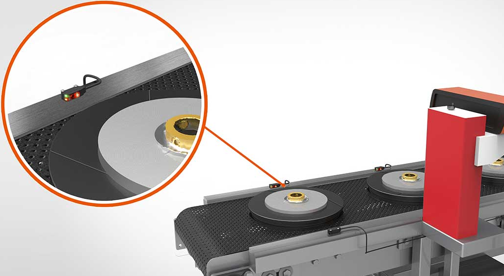 Ультракомпактные фотоэлектрические датчики используются для обнаружения присутствия тормозных дисков в производственных линиях.