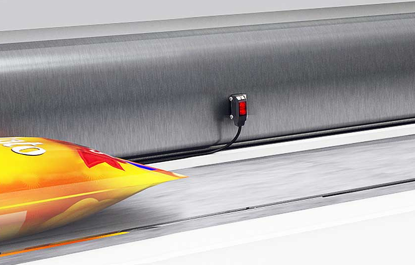 Ultra-compact photoelectric sensors are installed on a conveyor belt, to detect the presence of finished goods being transported.