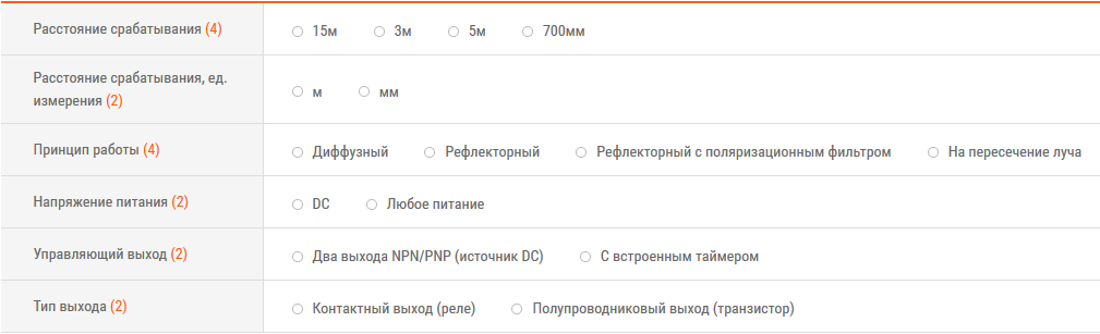 - Типы выходов: контакты реле (для питания переменным/постоянным током), PNP/NPN с открытым коллектором (для питания постоянным током)
