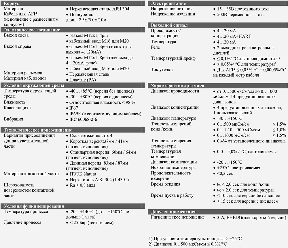 Кондуктометрические датчики концентрации (проводимости) CombiLyz AFI4/5 предназначены для измерения концентрации пищевых жидких продуктов и их производных, растворов, реагентов, в том числе для контроля процессов СИП-моек.
