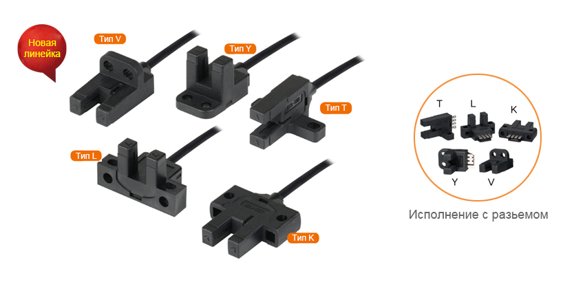 Доступны микрофотоэлектрические датчики серии BS5 5 различных форм (типы K, T, L, Y, V) как с кабелем, так и в исполнении с разъемом, что обеспечивает максимально широкие возможности использования и настройки в разнообразных пользовательских системах. Эти датчики отличаются высокой частотой реакции, составляющей 2 кГц, наличием функции переключения режима работы — на свет / на затемнение и пыленепроницаемых защитных окон на излучателе и приемнике.