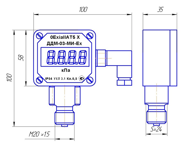 • ДДМ-03-МИ-Ех – 3-х предельный с индикатором взрывозащенного исполнения с маркировкой «0Exia IIAT5 Х».