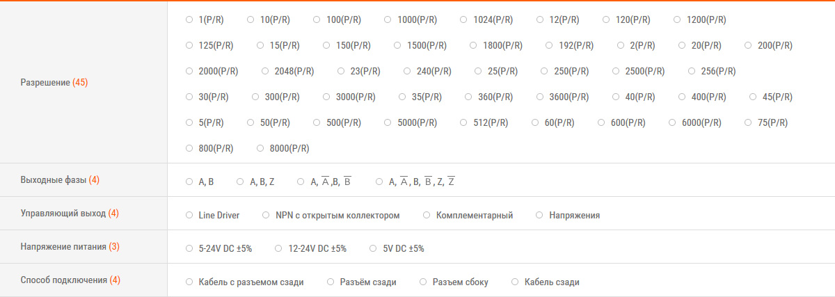 - Различные разрешения: от 1 до 8000 импульсов на оборот