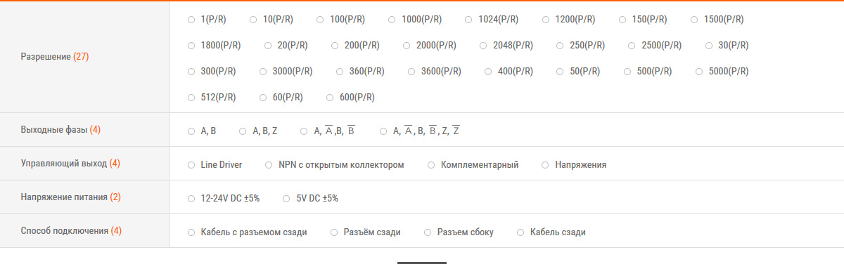 - Различные разрешения: от 1 до 8000 импульсов на оборот