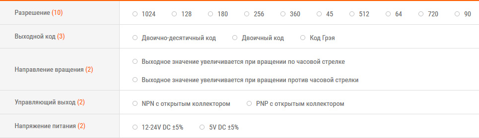 - Различные разрешающие способности вплоть до 10 бит (1024 делений/об)