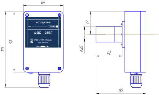 Габаритные размеры (без фланца), ширина х высота х длина, мм ФДС-03 БГ ФДС-03 БГ-У (угловой) |