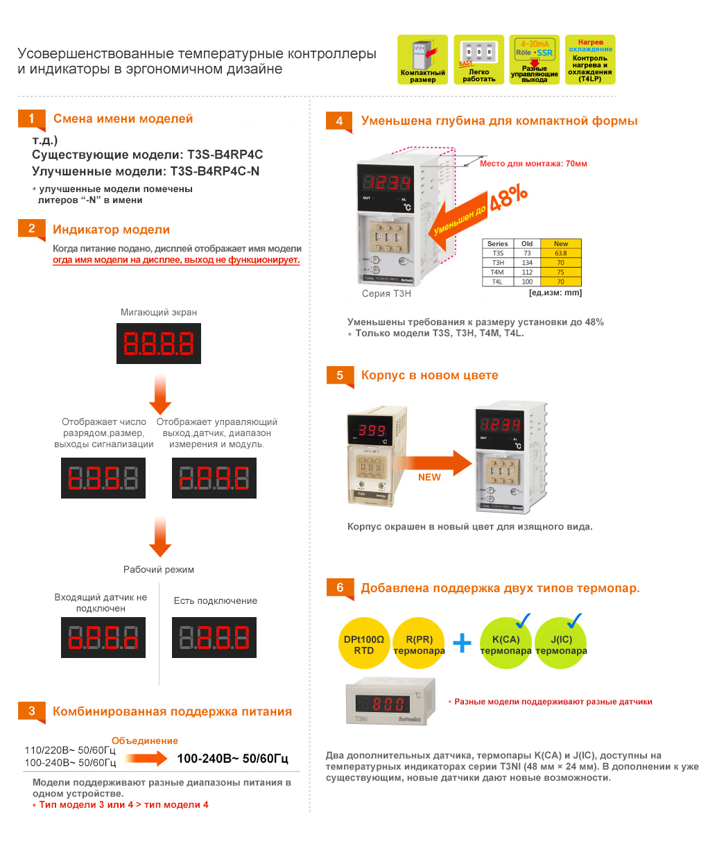 - 2 независимые уставки и управляющие выходы для управления обогревом и охлаждением (T4LP)