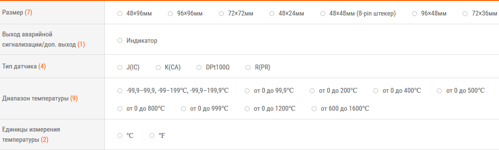 - Различные параметры выходного сигнала: реле, привод твердотельного реле, ток