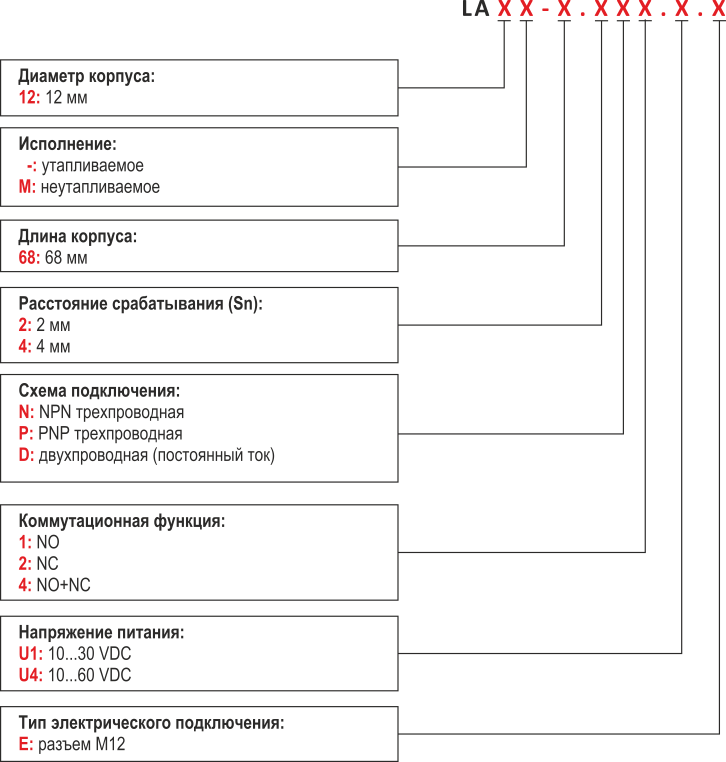 10…60 VDC | двухпроводная | NO | LA12М-68.4D1.U4.E | |||