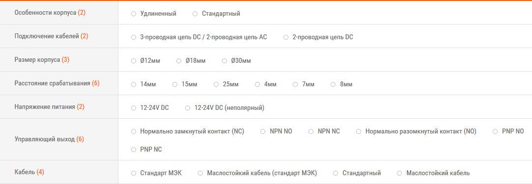 Доступно 137 различных моделей датчика PRDW