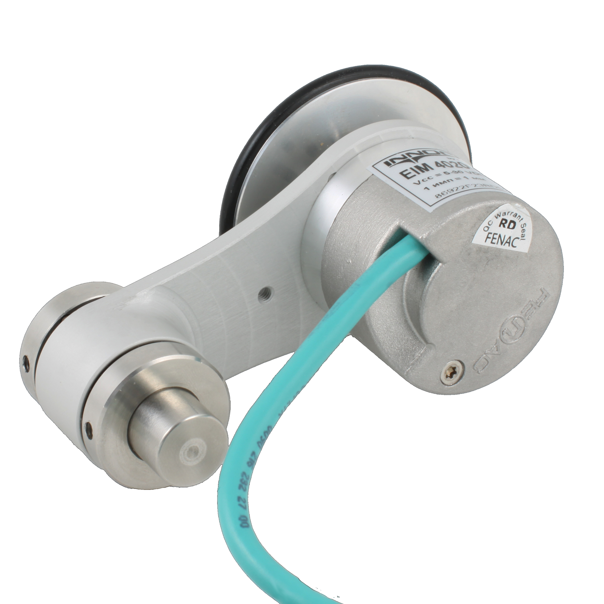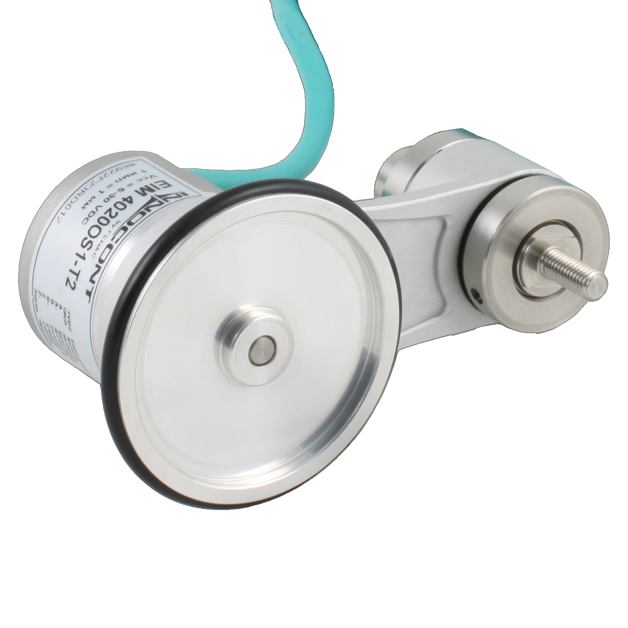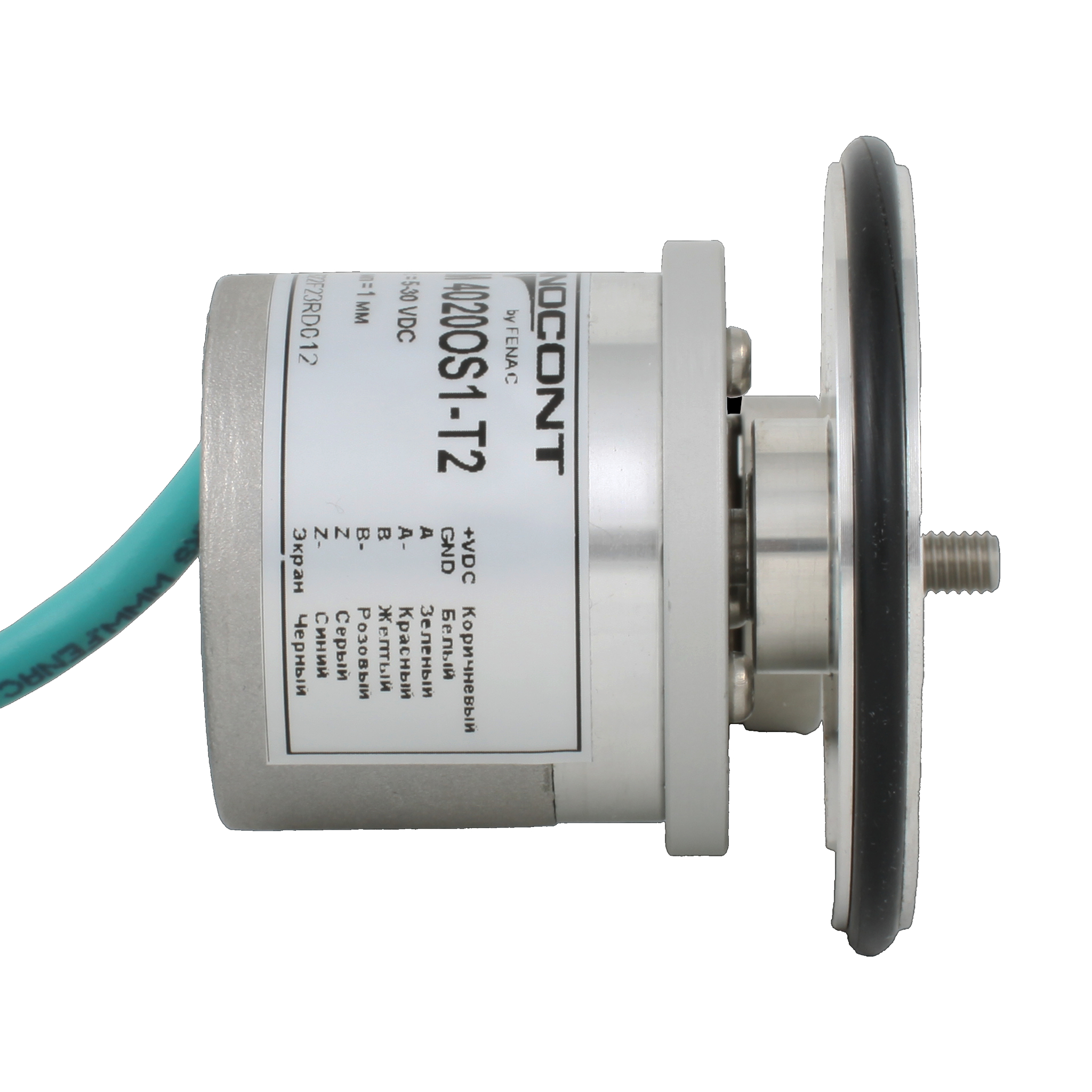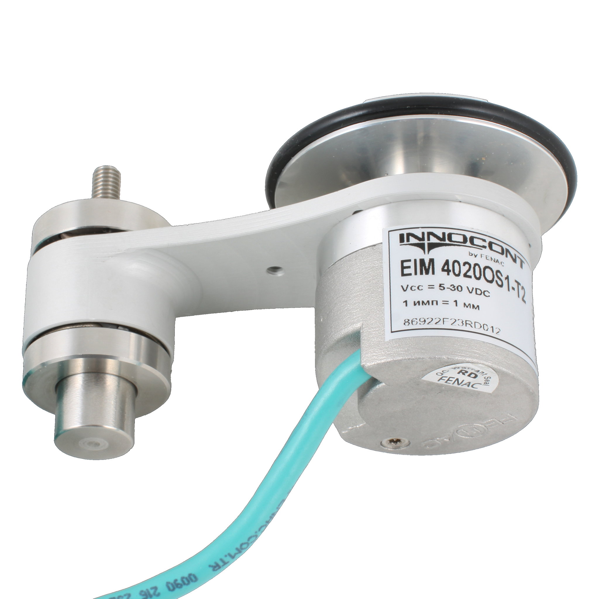 Инкрементальный энкодер D=40мм с мерным колесом L=200мм, контактная поверхность — резина, профиль гладкий, 1имп/1мм, 5…30VDC, выход HTL, IP64, -20…+85°C, тангенциальный кабель 2м