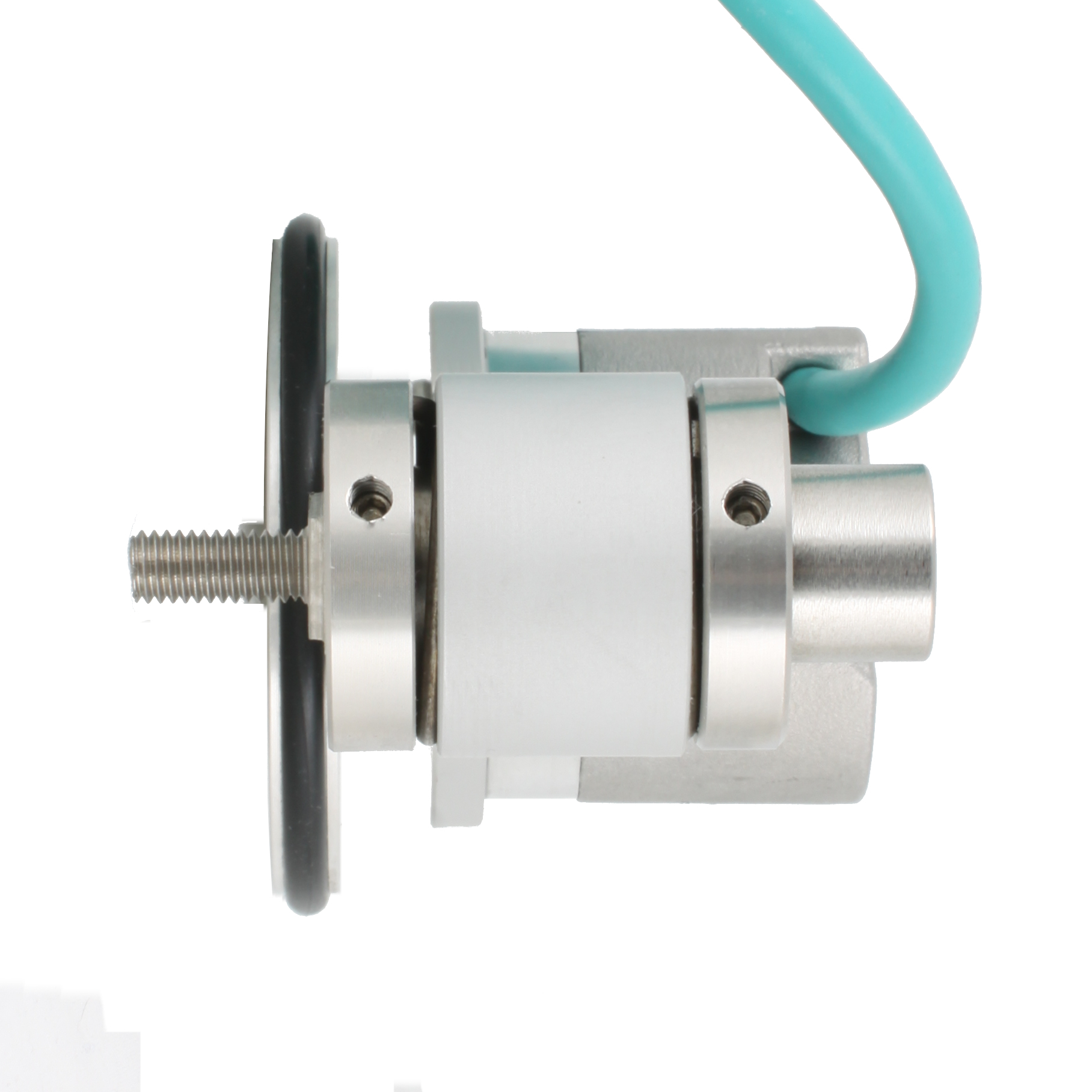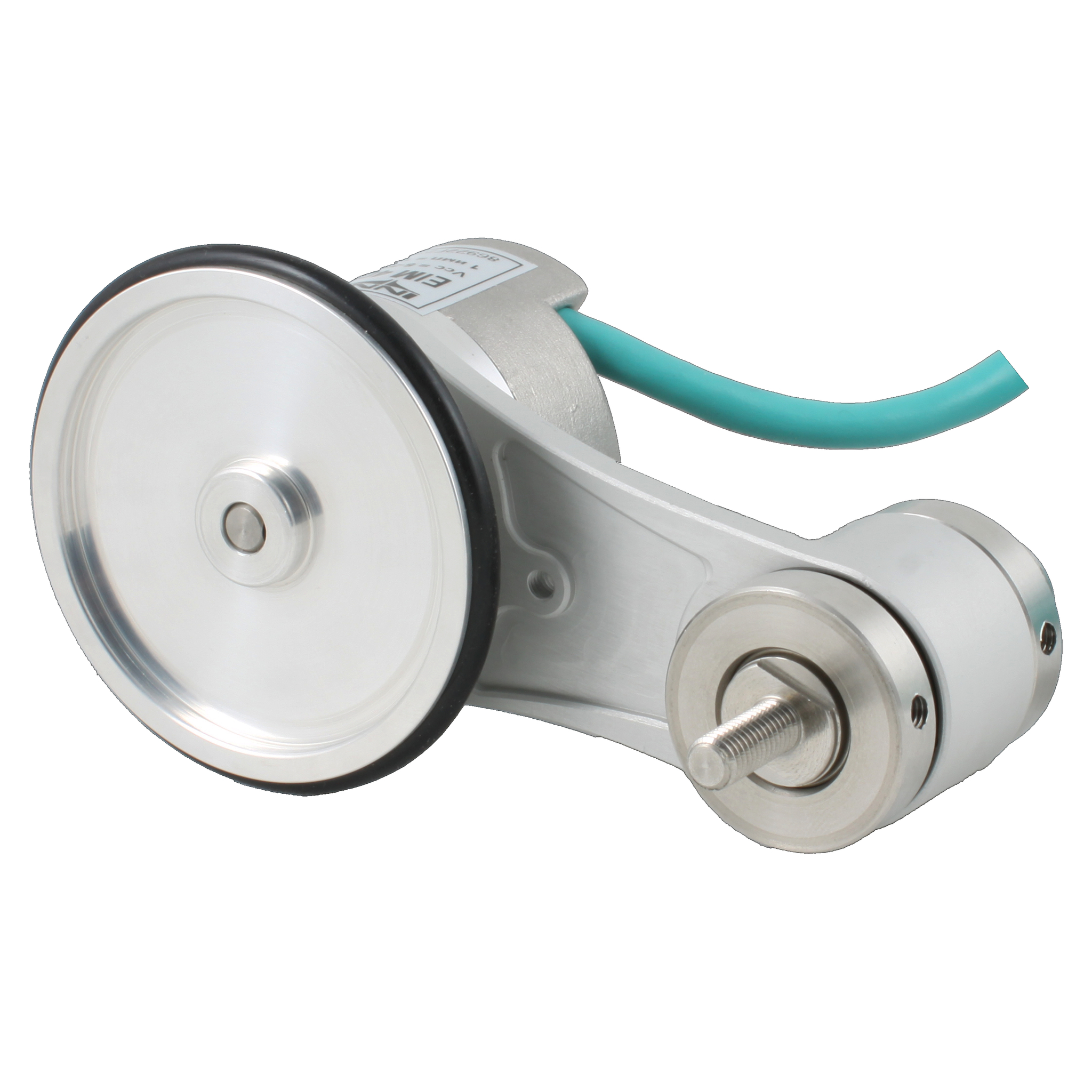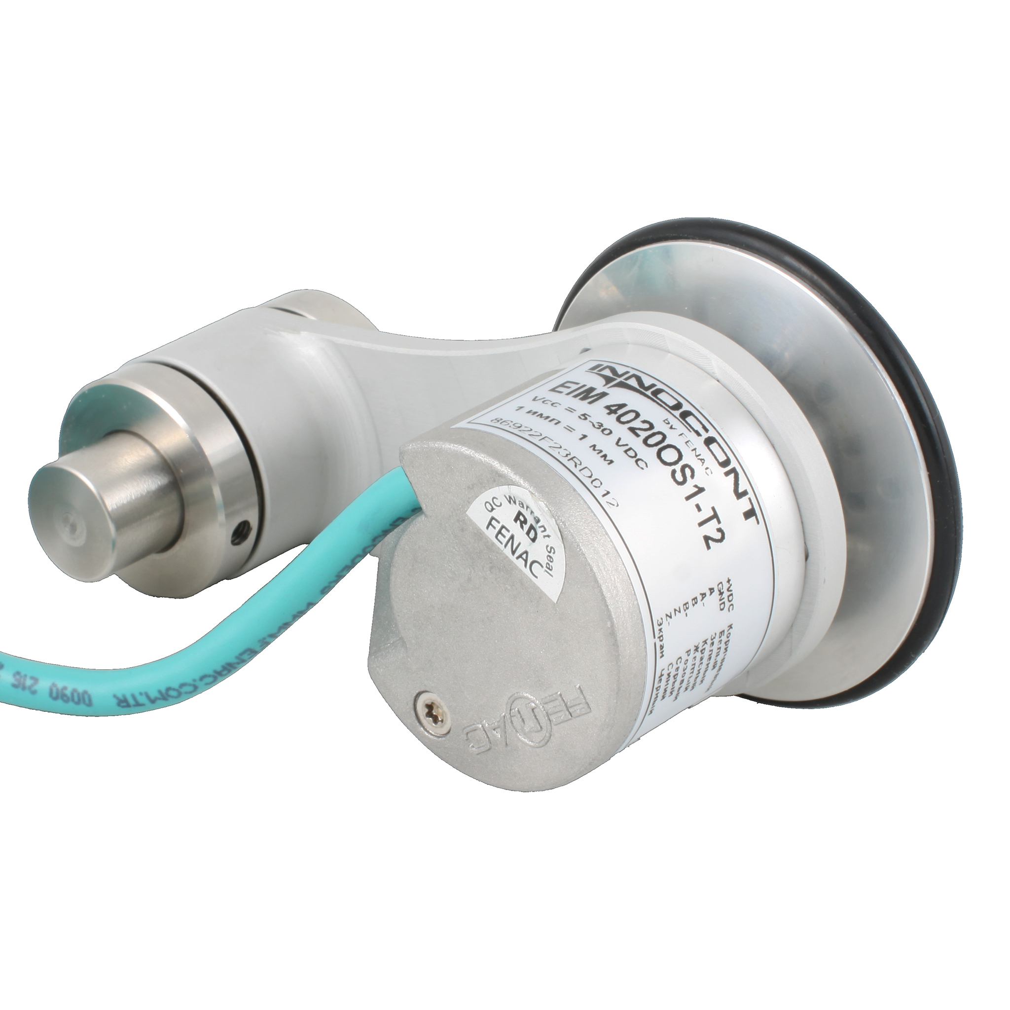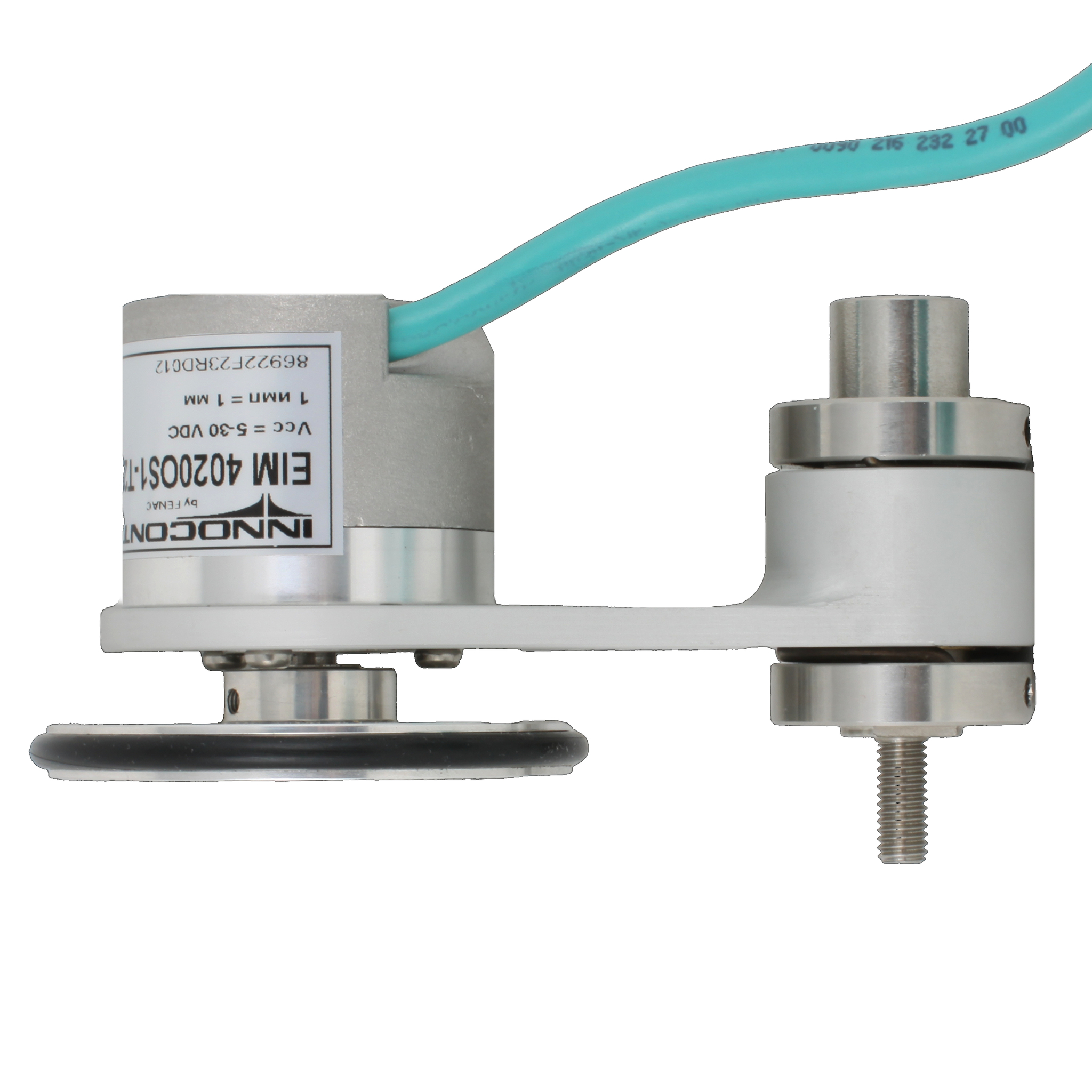 Инкрементальный энкодер D=40мм с мерным колесом L=200мм, контактная поверхность — резина, профиль гладкий, 1имп/1мм, 5…30VDC, выход HTL, IP64, -20…+85°C, тангенциальный кабель 2м