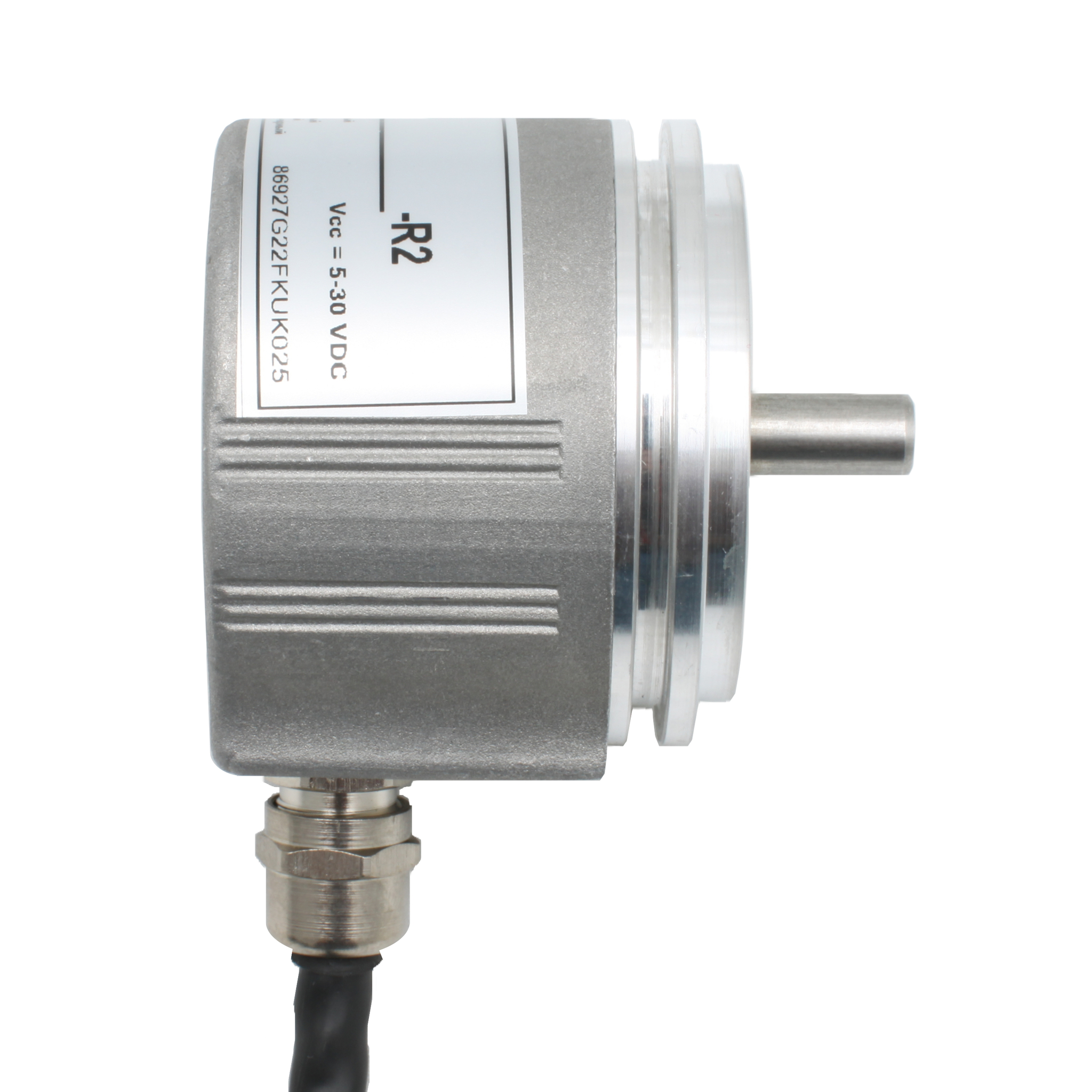 Инкрементальный программируемый энкодер D=58мм, выступающий вал 8мм, сервофланец, 3000 имп/об, 5…30VDC, выход TTL/HT