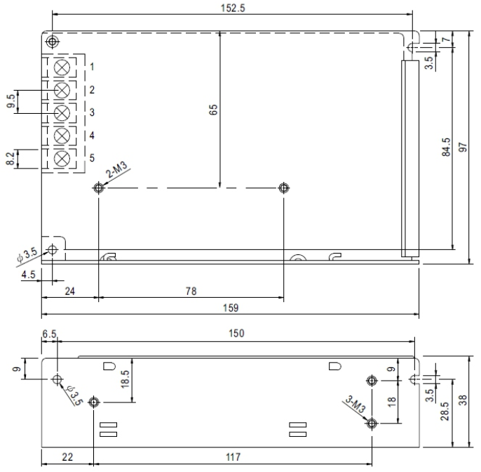 Сопротивление изоляции: | I/P-O/P, I/P-FG, O/P-FG — 100M Ohms/500VDC |