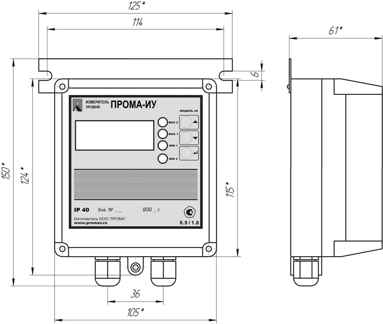 Габаритные размеры, мм: длина х ширина х высота — щитовой — настенный |