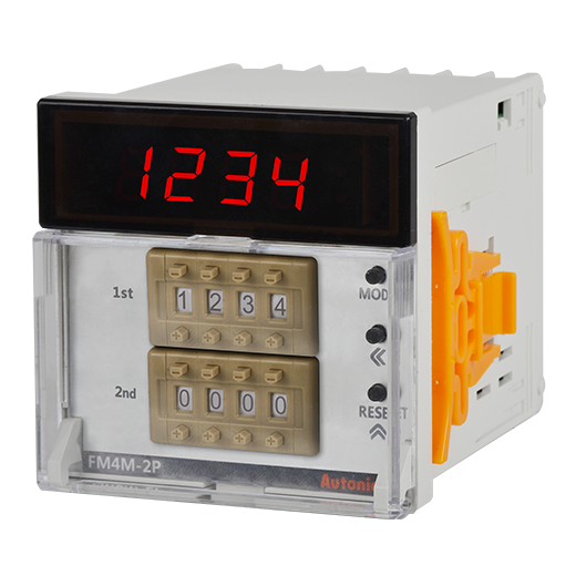 В счетчиках серии FM можно задавать коэффициент умножения или деления для 1 входного импульса и отображать расчетное значение в режиме умножения или деления. Эти счетчики обладают скоростями отсчета 1 отсчет/мин., 30 отсчетов/мин., 300 отсчетов/мин., 2 тыс. отсчетов/мин. и 5 тыс. отсчетов/мин., а также функцией отображения десятичной запятой (фиксированное положение десятичной запятой). Счетчики серии FM имеют размеры согласно стандарту DIN (Ш х В, 72 x 72 мм), доступны 4-разрядные и 6-разрядные модели.
