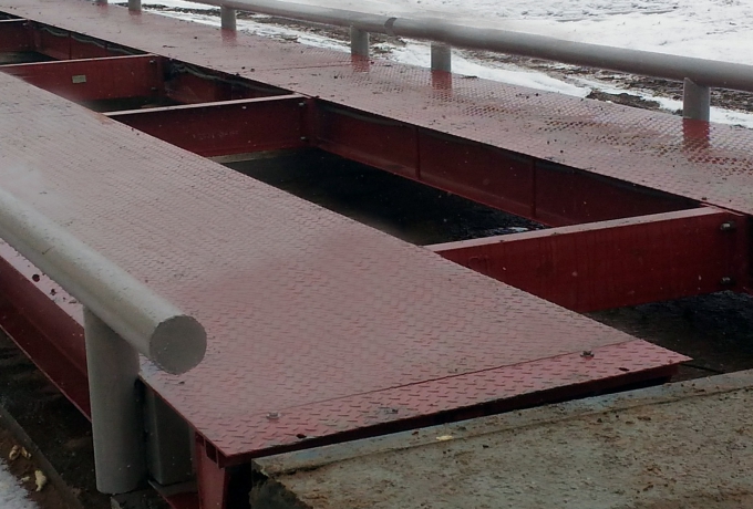 надземный: весы устанавливаются на железобетонных плитах над уровнем земли и комплектуются двумя пандусами для съезда и заезда автотранспорта. Такой вариант установки не требует проведения подготовительных работ, необходимых для заглубления весоизмерительного оборудования в грунт.