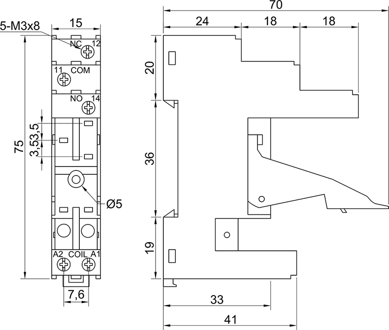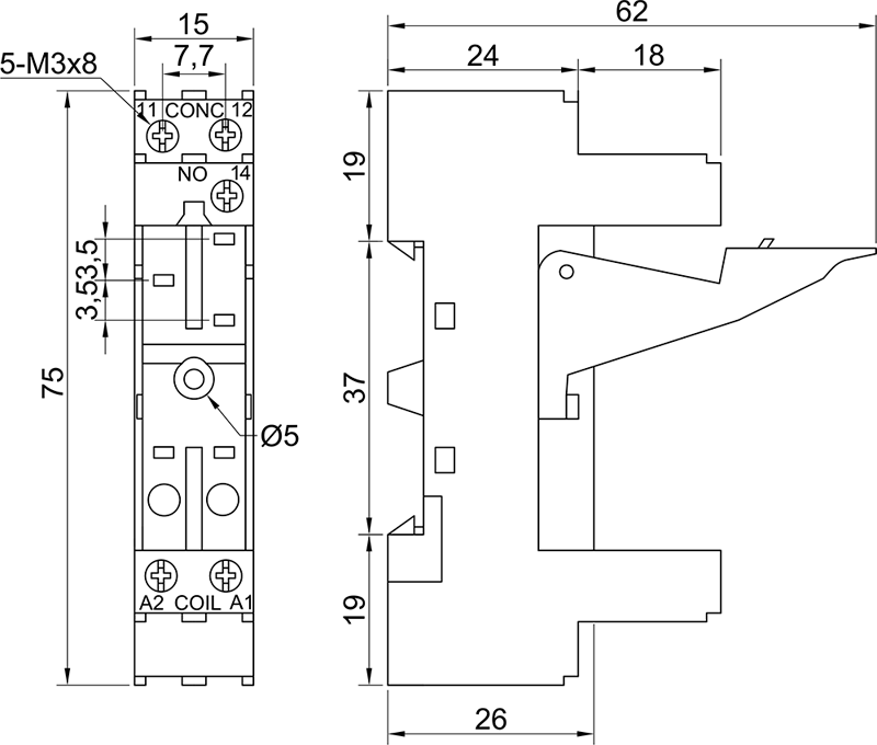 BS 2/15P Высота устанавливаемого реле 15 мм |