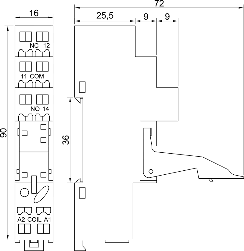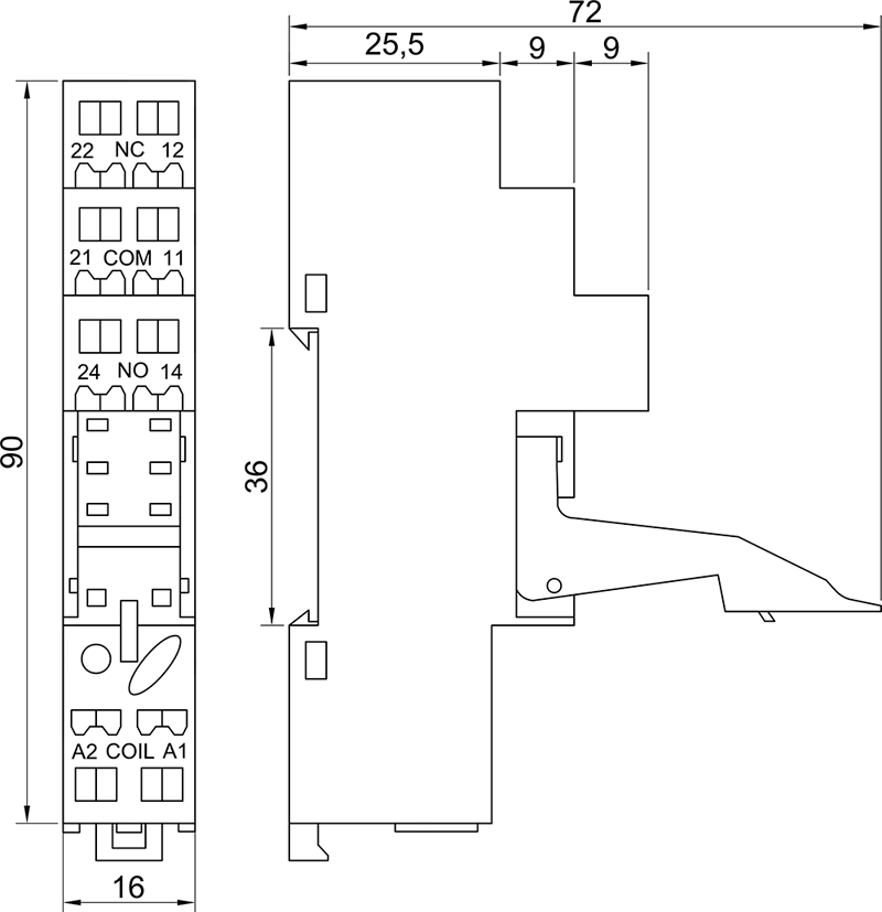 BS 2/25P Высота устанавливаемого реле 25 мм |