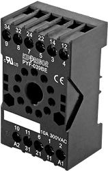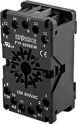 Колодки монтажные серий PYF-029BE и PYF-039BE для 2- и 3-контактных промежуточных реле с круглым цоколем