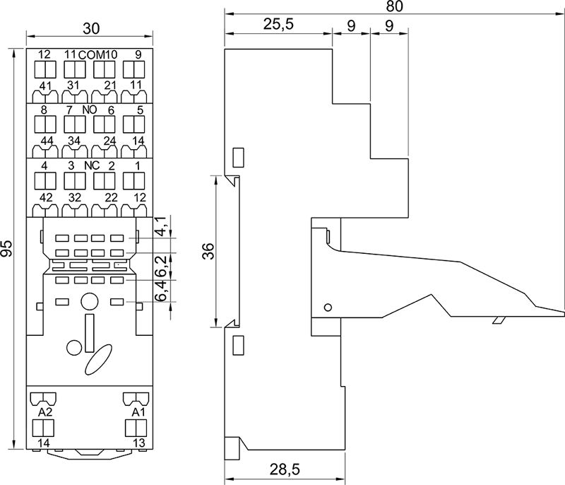 Колодки монтажные серий PYF-044BE и PYF-144BE (для 4-х контактных промежуточных реле)