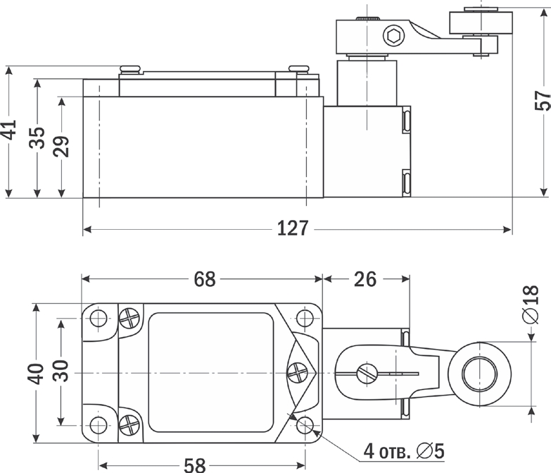 Конечный выключатель с роликом для коммутации электрических цепей при достижении конечных положений контролируемого объекта