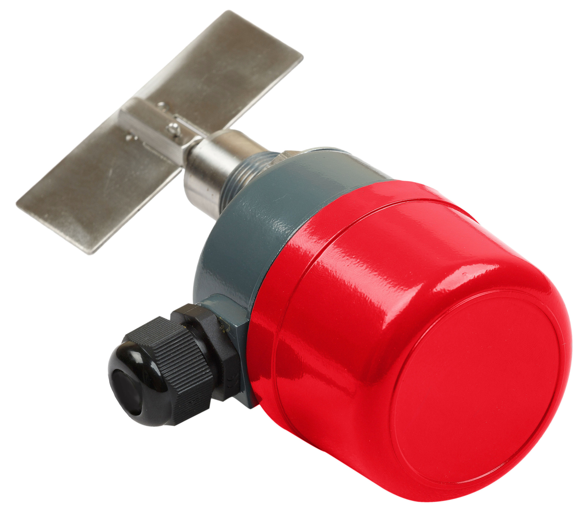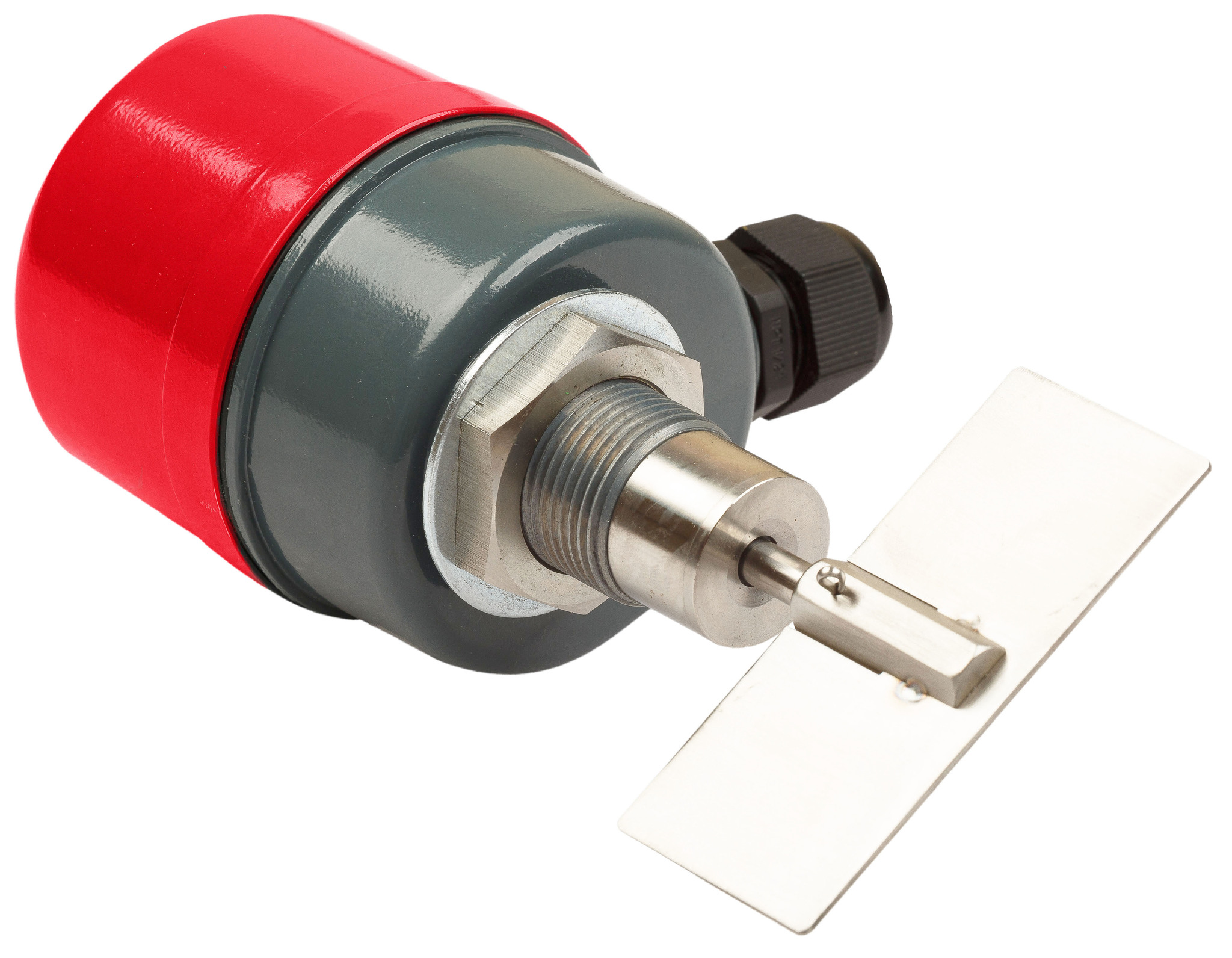 Механический ротационный датчик предельного уровня сыпучих материалов в алюм. корпусе, компактное исполнение, -30 +80 С, Рmax=0.8 bar, 24 VDC, IP65, прямоугольная лопасть 35х80 мм, нерж. сталь, скорость вращения 1 об/мин, соединение- резьба 3/4″, контргайка, удлинение 85 мм, нерж. сталь