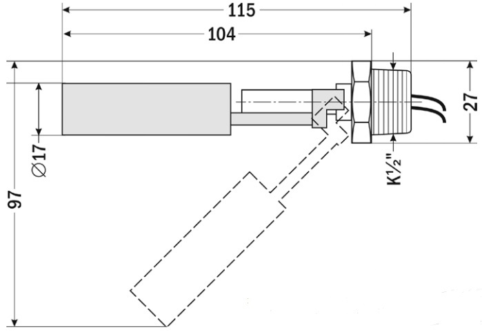 • В зависимости от способа установки датчика выходной контакт замыкается или размыкается при понижении уровня жидкости
